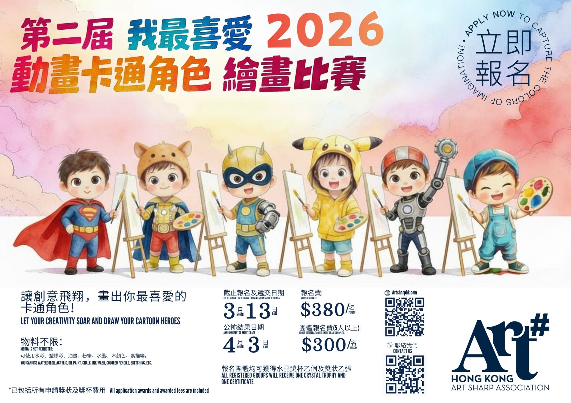 這是一個充滿創意和樂趣的活動,讓你有機會展示自己的藝術才華,並與其他小朋友分享你對動畫卡通角色的熱愛。無論你喜歡的是可愛的小動物、勇敢的英雄,還是搞笑的角色,只要用心描繪出來,就能參加比!所有參賽作品將由專業評審評選,讓你們的努力受到肯定。立即參加,讓我們共同創造一個充滿色彩與想像的美好時刻!期待看到你們的精彩作品!